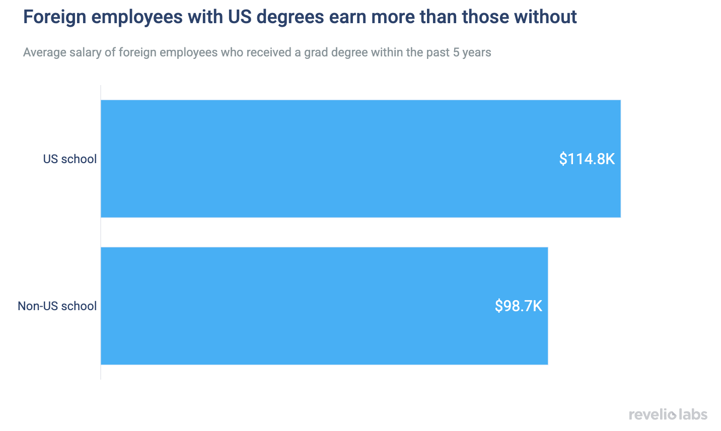 For foreign workers in the US, is graduating from a US institution worth the cost? A US degree comes with a salary premium: Of foreign workers in the US who earned graduate degrees in the past 5 years, those with degrees from US schools earn around $15k more than those with foreign degrees.